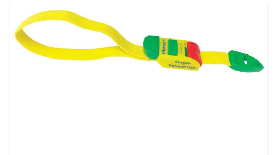 Haines Tourniquet -Single Patient Use, Peadiatric with green, yellow & red plastic clip for adj-Each